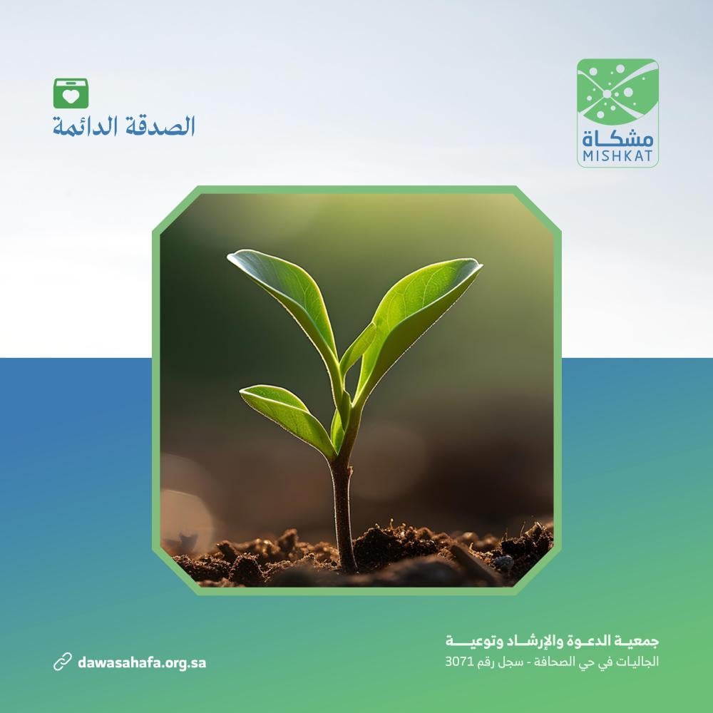 اجعل عطائك نورًا لا ينطفئ، وكن سببًا بعد الله في الخير المستمر مع الصدقة الدائمة لمشاريع جمعية مشكاة، ساهم بما تستطيع، فكل ريال يصل بإذن الله إلى مشاريع الجمعية المتنوعة، ويثمر في ميادين الخير